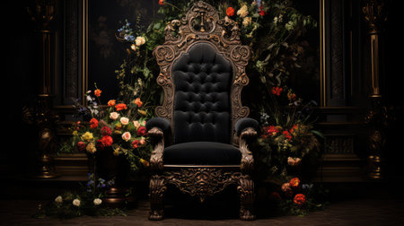 Exquisite image capturing the regal monarch in perfect grace on an elaborate majestic throne. Concept Regal Monarch, Majestic Throne, Exquisite Image, Perfect Grace, Elaborate