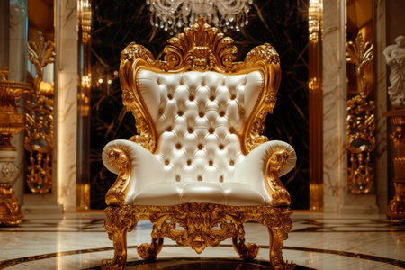 Opulent throne with gold accents --ar 3:2 Job ID: 79ff6217-48bc-4e34-8ea8-c9ee3f61eafb