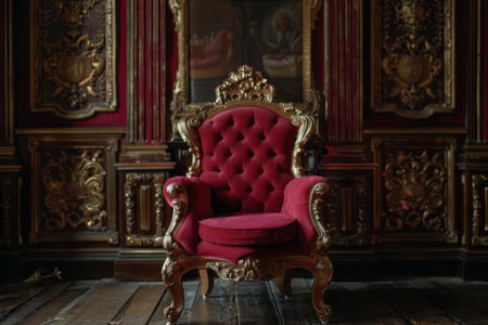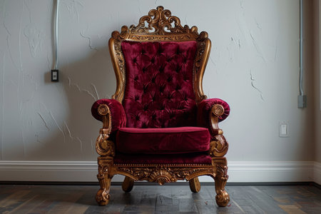 Regal throne with a velvet seat --ar 3:2 Job ID: 90b5f824-d2cf-4ae8-b8fd-f4d270b9f4a7