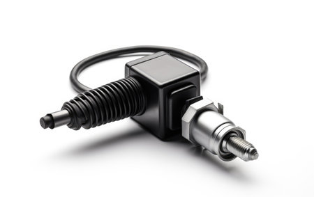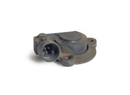 throttle position sensor, electronically inform engine management computer of throttle valve angle. isolated on white background, with clipping path