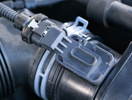 Automotive air flow sensor, close-up. Measures the amount of air entering the engine and sends it to the electronic control unit