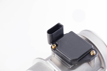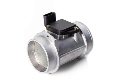Mass air flow sensor isolated on white background. Auto service industry. Spare parts catalog Auto service industry. Spare parts catalog.