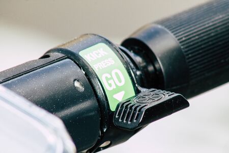 Tel Aviv Israel December 04, 2019 View of electric scooter parked in the streets of Tel Aviv in the afternoon