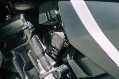Limassol Cyprus May 21, 2020 Closeup of a motorcycle parked in the streets of Limassol in Cyprus island