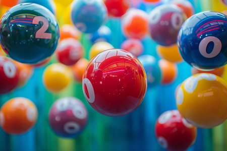 Bingo balls in a graceful descent, a mesmerizing ballet of numbers and hues, capturing the game allure