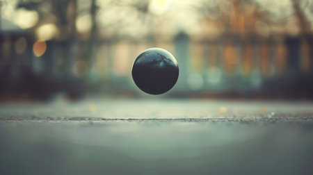 Tennis ball bouncing in the sunlight on a court during a warm evening