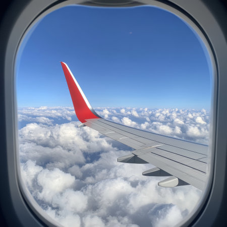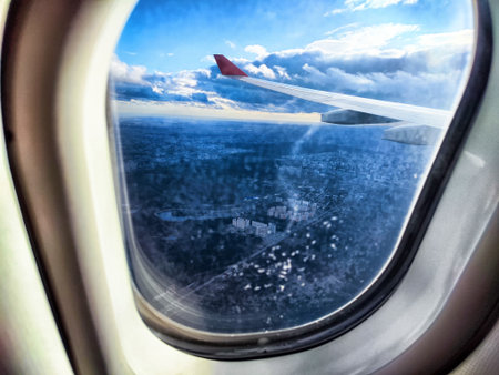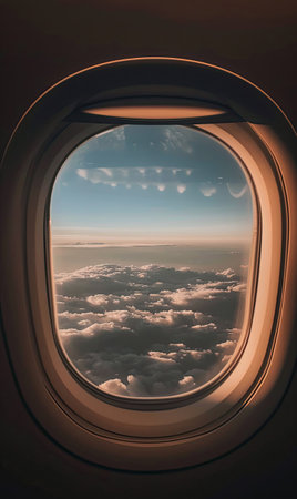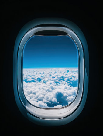 Framing the Sky: Captivating Airplane Window Photo in Selective Focus- AR 3:2