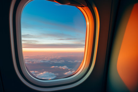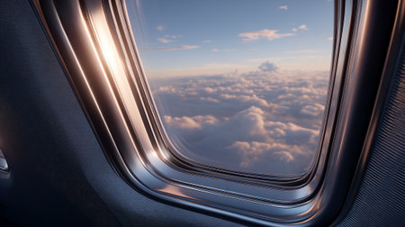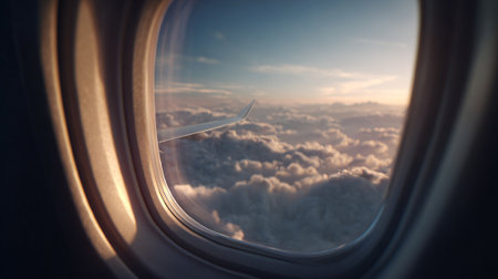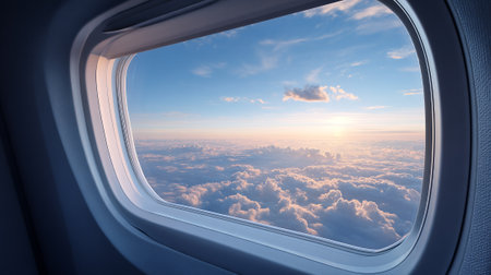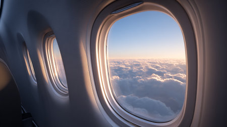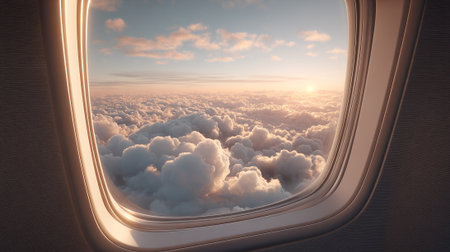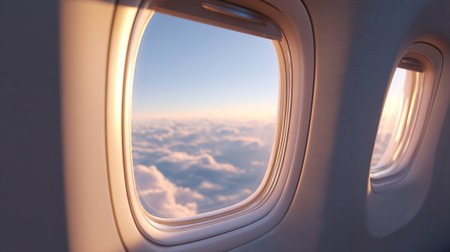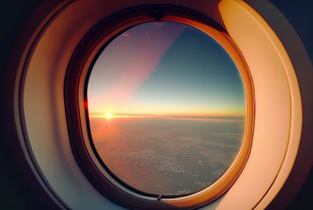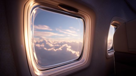 Shoot a breathtaking sunrise view from within an airplane, Generate AI