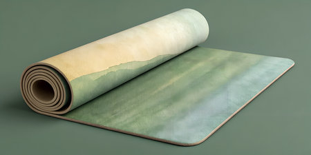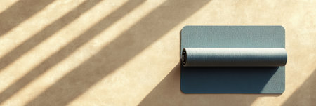 Muted tones of a rolled yoga mat on a soft light background create a serene atmosphere perfect for yoga practice or meditation.