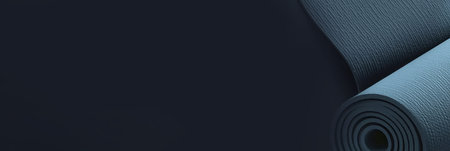 Rolled yoga mat on dark background for fitness and meditation enthusiasts.