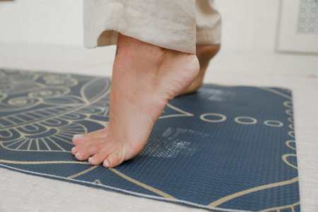 Close up detail of womans feet during yoga exercise.