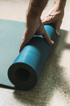 Cropped image rolling yoga mat