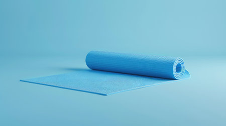 A rolled-up light blue yoga mat rests elegantly on a smooth surface, symbolizing tranquility and mindfulness in fitness practices. Ideal for exercise enthusiasts.