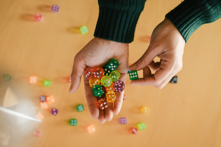 Hand holding dice for tabletop gaming enthusiasts and casual gamers