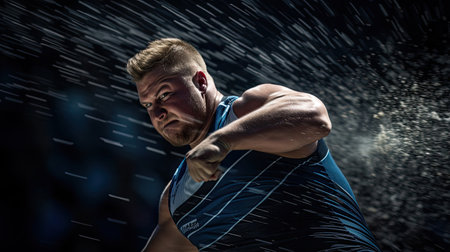 Man Lifting Shot Put at a Track and Field Meet