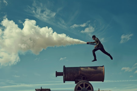 A cannon shooting a daring performer through the air AI generated