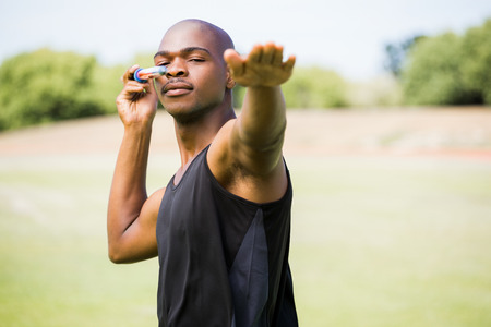 Profile view of sportsman practising shot put