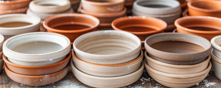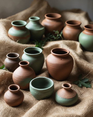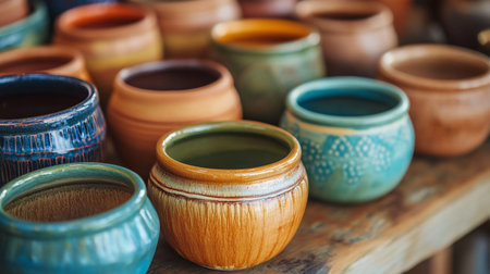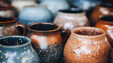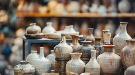 Collection of artisan pottery and vases, showcasing various shapes, colors, and textures. Perfect for arts, crafts, and handmade product themes.