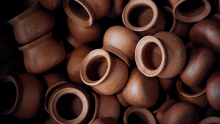 Muted shades and indistinguishable details of handcrafted pottery and ceramics