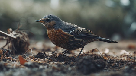 closeup shot of a beautiful bird on a mossy rock in nature.generative ai
