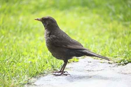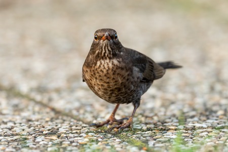 Female Eurasian blackbird (Turdus merula) known as common blackbird in Windsor Great Park, United Kingdom