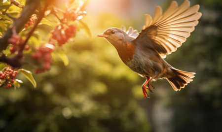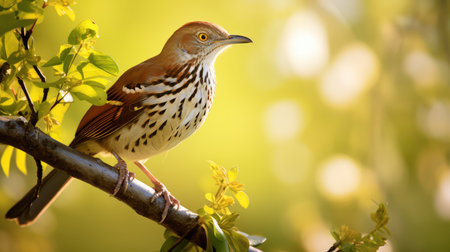 Small bird perching on branch, singing sweetly generated by artificial intelligence