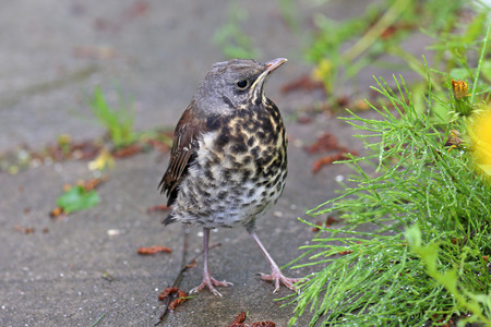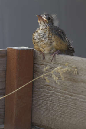 Turdus pilaris. Baby bird of a thrush