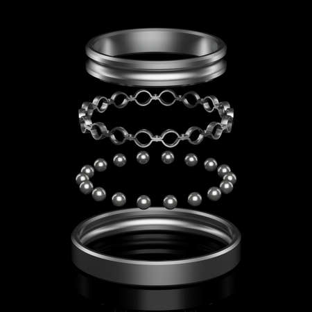 Ball bearing on the background of the bearings. 3D illustration.