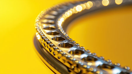 A vibrant arrangement of various metallic circular gears and rings set against a bright yellow backdrop, ideal for industrial, technical, or creative projects.