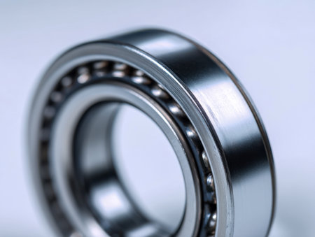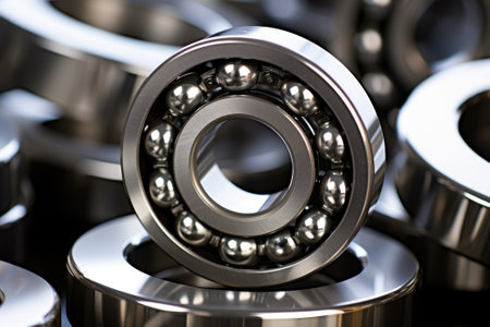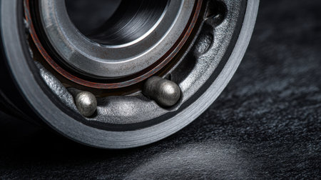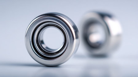 This close-up image showcases a metal bearing, highlighting its smooth surface finish and precise engineering in an industrial setting.