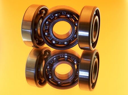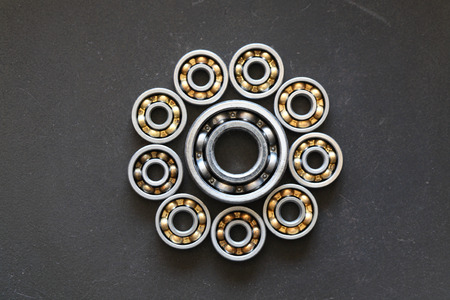 different bearings on a metal background. Part of mechanism.