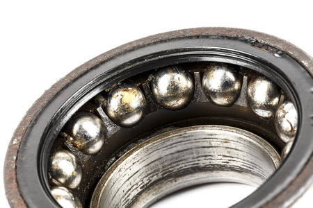 old and rusty ball bearing with grease stain .