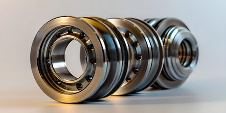 Closeup of three roller bearings on clear background. Concept Product Photography, Industrial Components, Close-up Shot, High Quality Images, Clear Background