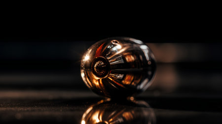 Close-up of a shiny metal ball on a black background.