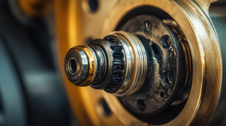 This close-up image showcases a detailed precision engine component, highlighting intricate mechanical features and textures in an industrial automotive environment.