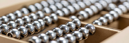 Precision Components Close-Up of Shiny Metallic Ball Bearings Neatly Arranged in a Cardboard Box