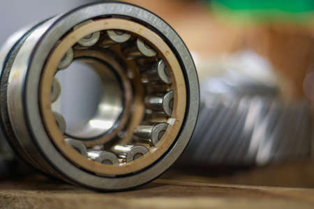Ball bearing with other details close up. Engineering and industrial concept