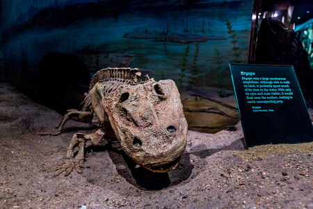 Drumheller, AB Canada - AUGUST 14, 2014: Eryops fossil is on exhibition in Royal Tyrrell Museum of Palaeontology.