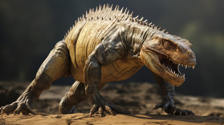 Prehistoric creature or dinosaur in the wild nature. Realistic style drawing. superlative generative AI image.