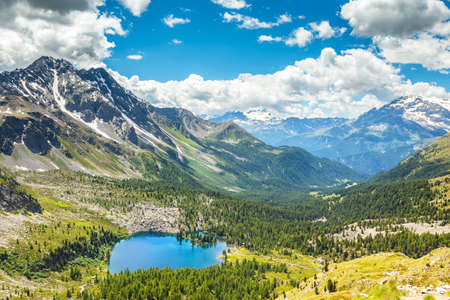Beautiful mountain landscape in Val Ferret, Italy. Highlands in the Alps.