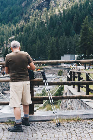 aged man preparing for hiking in Italy
