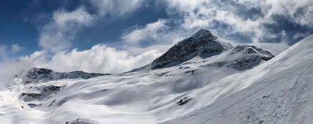 Winter snow covered mountain peaks in Austrian alps. Great place for winter sports