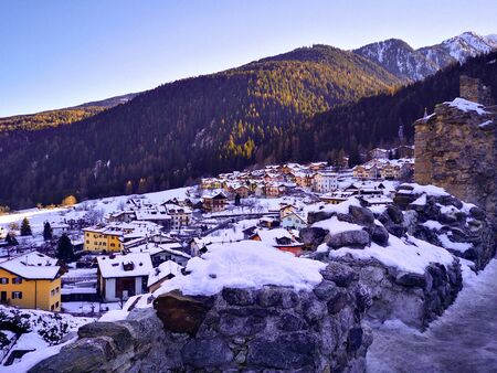 Winter view of the village of Ossana, Val di Sole, Trentino-Alto Adige, Italy.