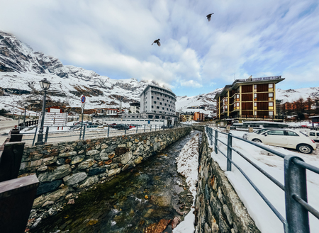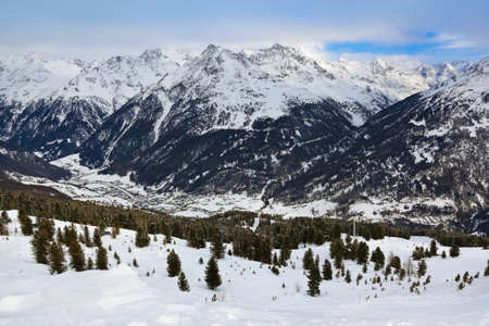 Panorama of Livigno (altitude 1816 m) in winter. Valtellina, Italy