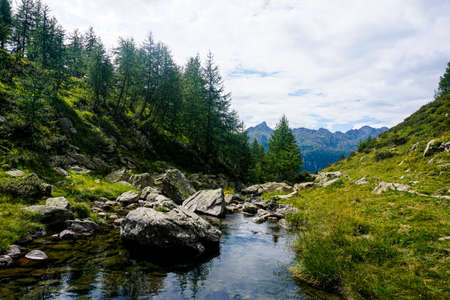 River in Rhemes Notre Dame valley along the trekking path, Aosta valley, Alps, Italy