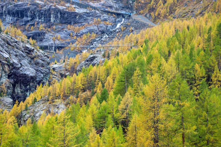 View of landscape furi mountain in autumn season from cable car in zermatt, swiss