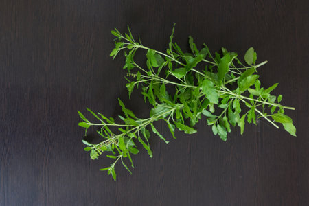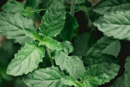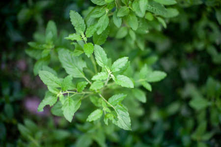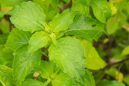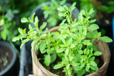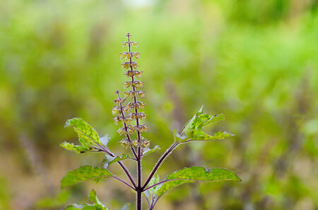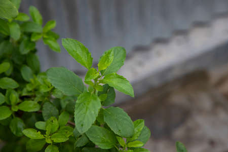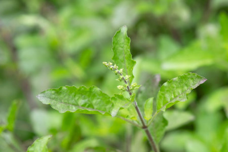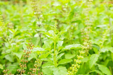 Medicinal basil or green organic tulsi leaves plant