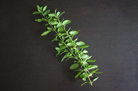 Holy basil on black background.
