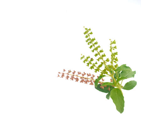 Holy basil flower with leaves on white background.