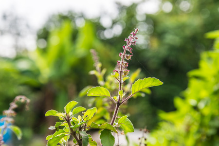 Holy basil in organic garden. Tulsi is used in ayurvedic medicine.